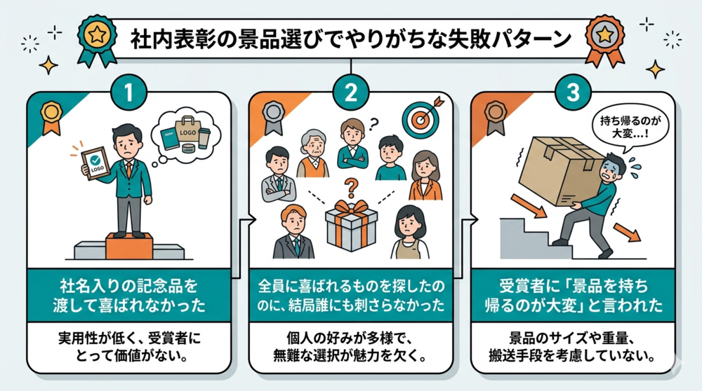 次に、社内表彰の景品選びでよくある失敗パターンをみていきましょう。