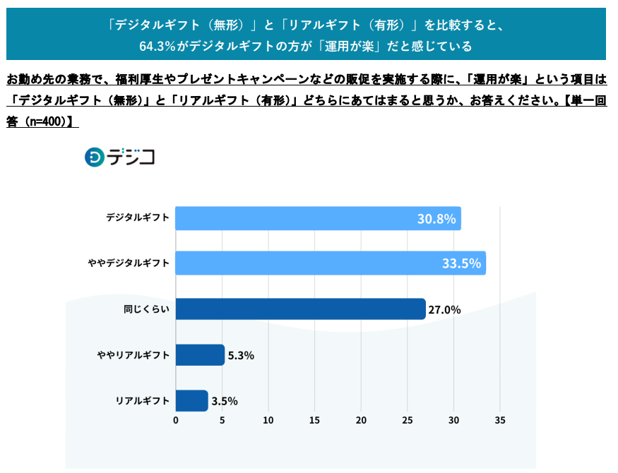 このことから、担当者の多くがデジタルギフトのほうが運用しやすいと感じていることがわかります。