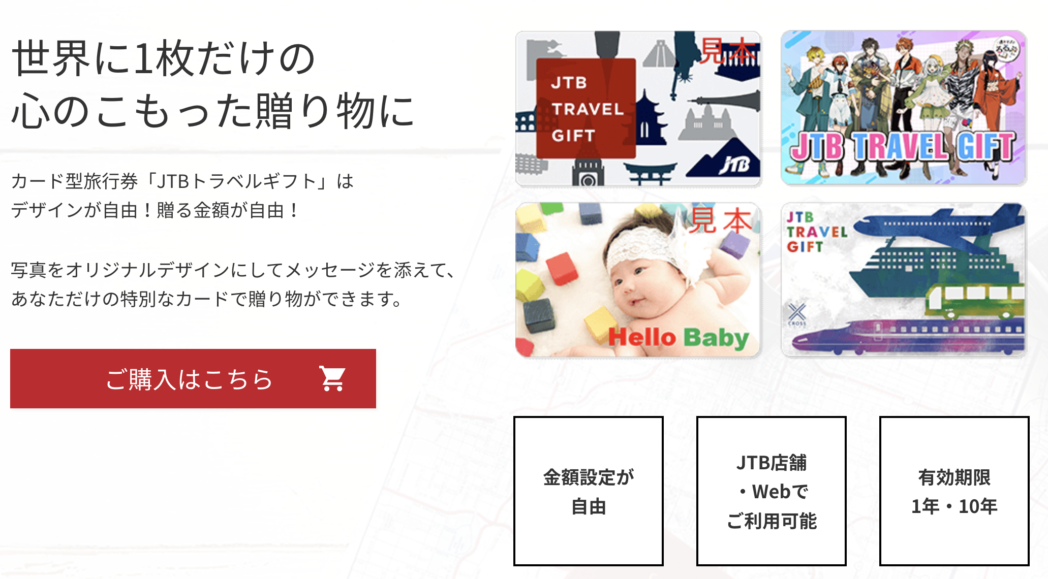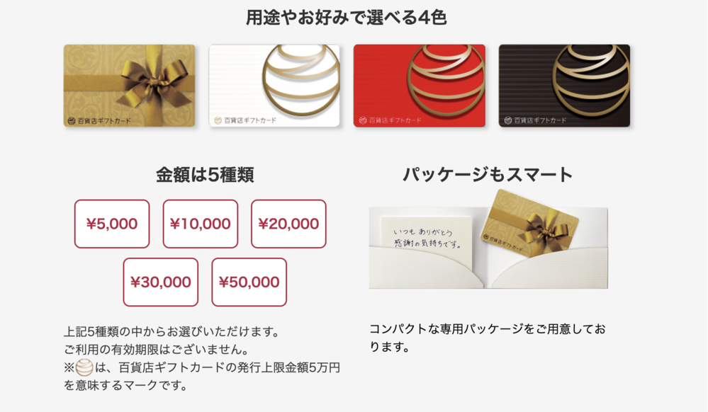 豊富な商品券タイプを展開しており、設定したい額面やプレゼントの目的にあわせてさまざまなレパートリーから選べます。