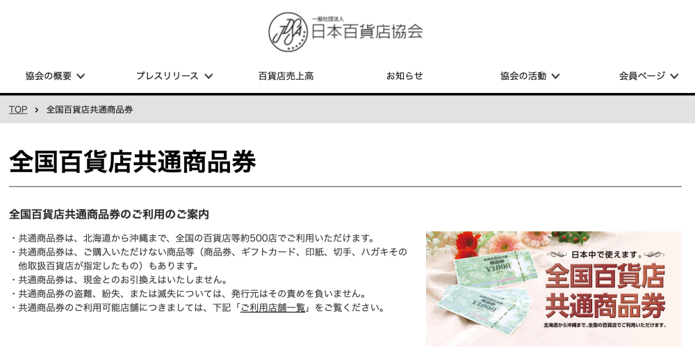 URL | 全国百貨店共通商品券 |