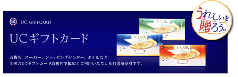 UCギフトカードは、全国の百貨店やスーパー、家電量販店、ドラッグストアなど、幅広い業種の店舗で利用できる汎用性の高い商品券です。