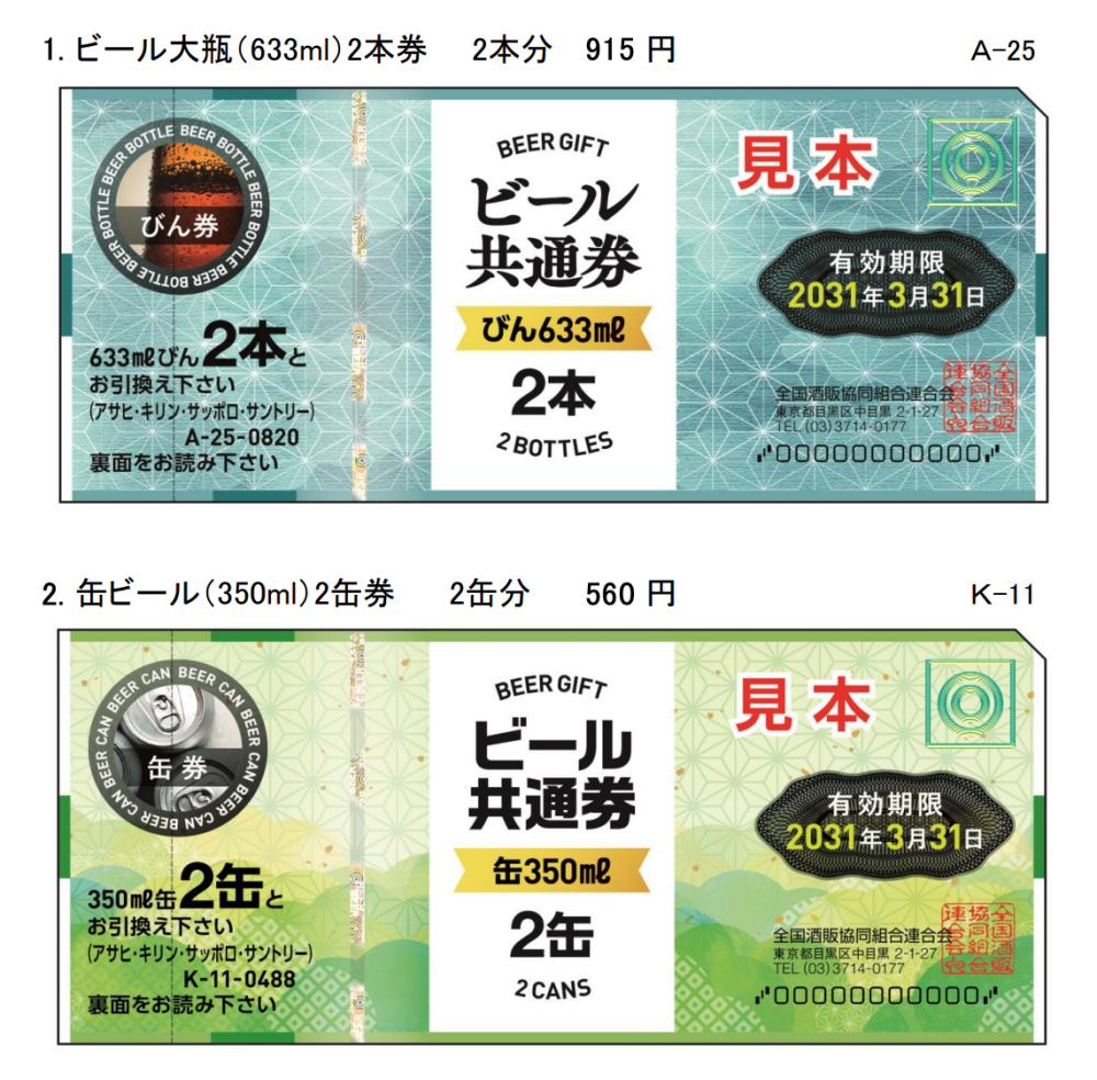ビール共通券(通称:ビール券)は、全国の酒店で券面表記の商品と交換できる商品券で、お中元やお歳暮などの季節の贈り物として長年親しまれています。