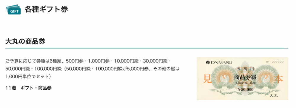 商品券の額を無駄なく使えるため、喜ばれやすい商品券です。
