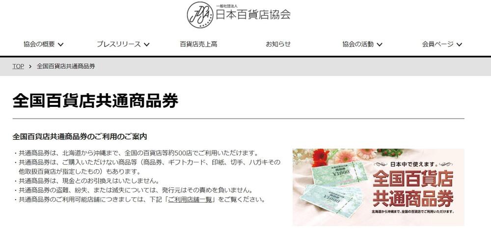 全国約500店の百貨店で利用できる商品券が、全国百貨店共通商品券です。