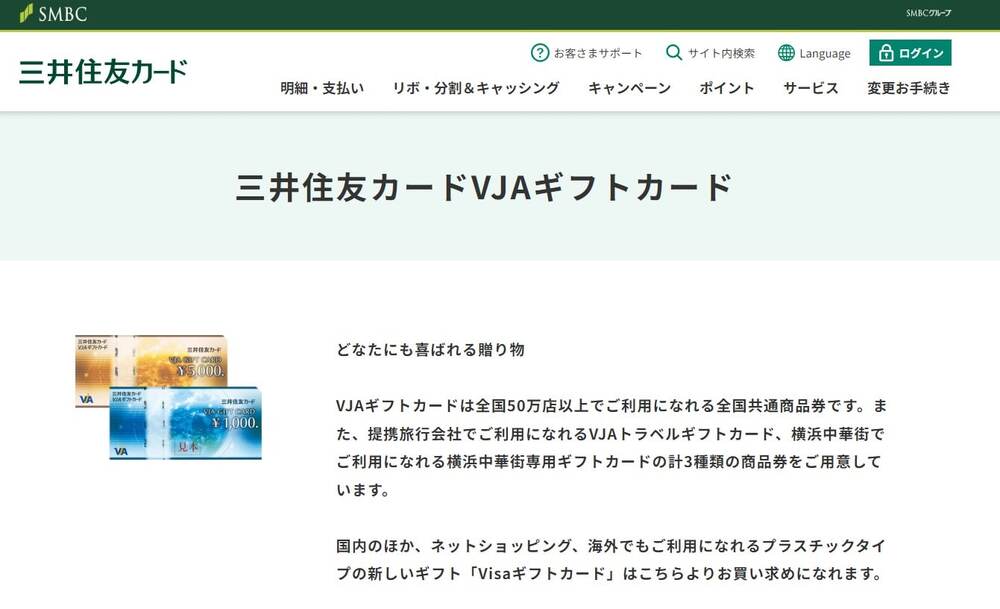 三井住友カードVJAギフトカードは、三井住友カードが発行する全国共通商品券です。