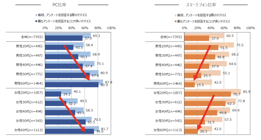 アンケートに使用されるデバイスは、年代や利用シーンによって異なります。