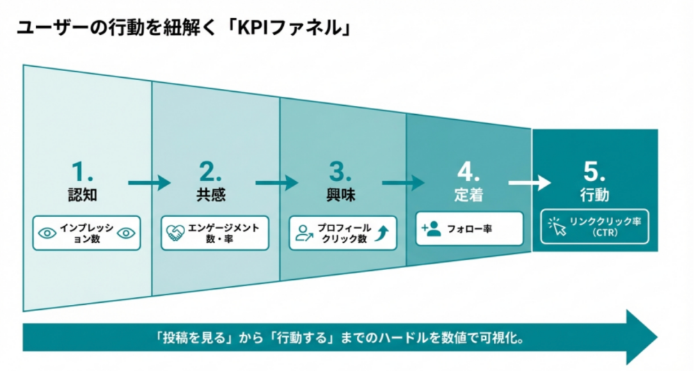 X企業アカウントの運用では、投稿を続けるだけでなく「どれだけ成果が出ているか」を数値で把握するために、KPI(重要指標)が活用されます。