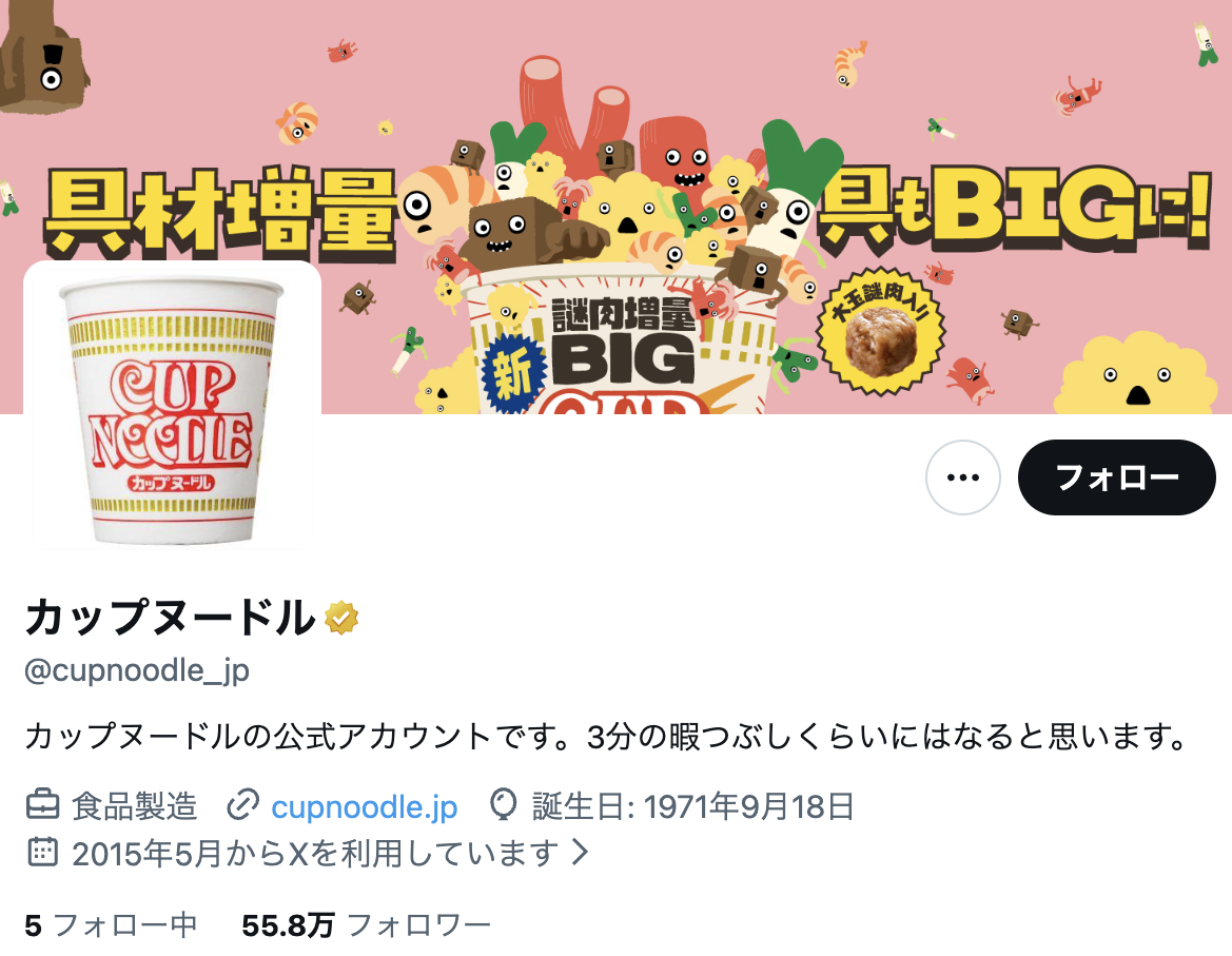 日清食品では、企業の公式アカウントに加え、商品ブランドごとにXアカウントを運用しているのが特徴です。