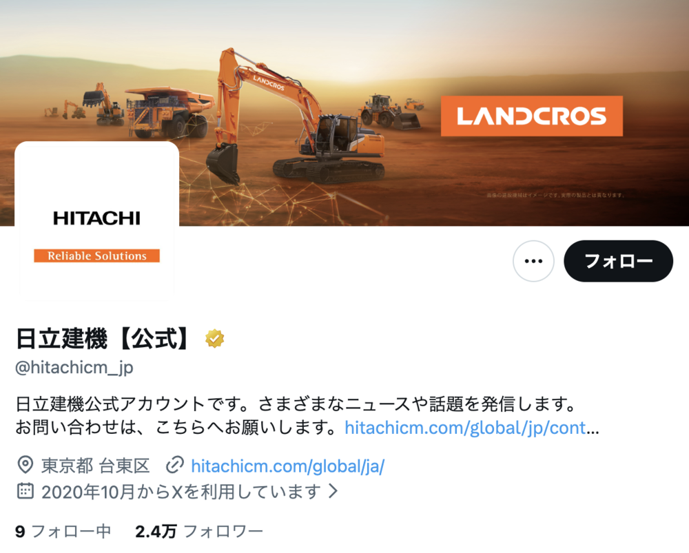 日立建機は、建設機械の販売をおこなう企業で、Xの公式アカウントではフォロワーが楽しめるコンテンツを積極的に発信しています。