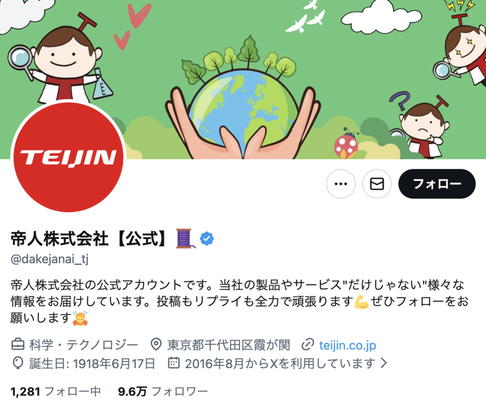 Xの公式アカウントでは、製品の宣伝だけでなく、企業のビジョンや社内の雰囲気を伝える投稿が多く、ブランドの信頼性向上にも役立てられています。