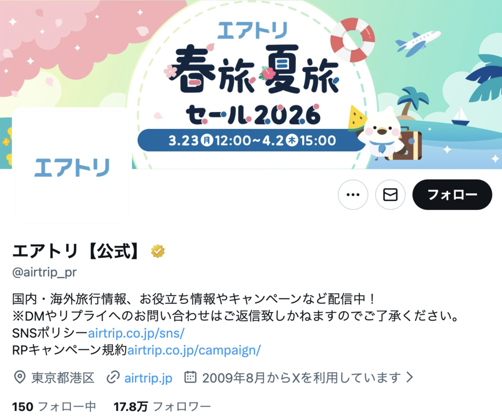 オンライン旅行会社のエアトリは、旅行好きの人が楽しめる投稿が特徴です。