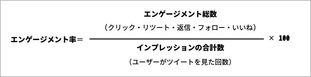 つまりエンゲージメント率とは、ポストが見られた回数に対して、どれだけ行動してもらえたかを表す割合のことです。